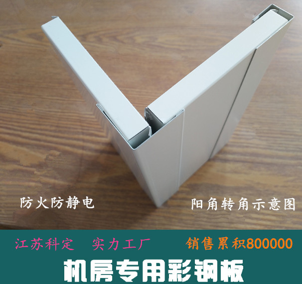 2、由一側開始安裝彩鋼板,依次安裝,相連板間距12mm。隔板之間采用寬度12mm壓條,標準單元墻板均可互換。